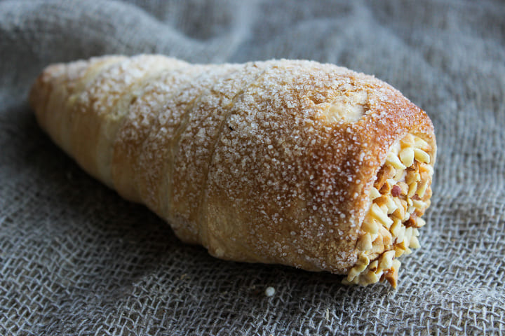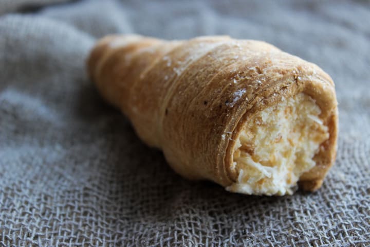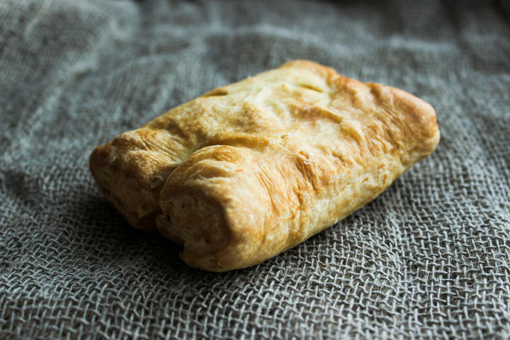 Слоеное тесто, начинка с ветчиной и твёрдым сыром