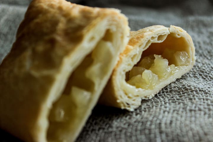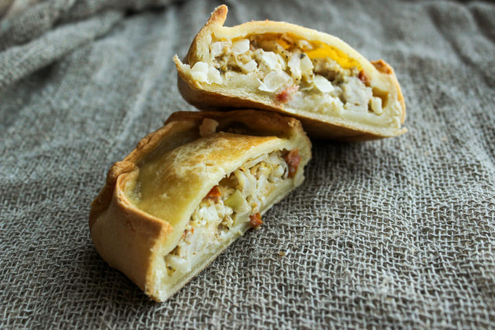 Слоеное тесто, начинка из запечённый курицы с добавлением овощей