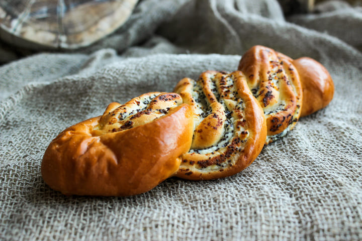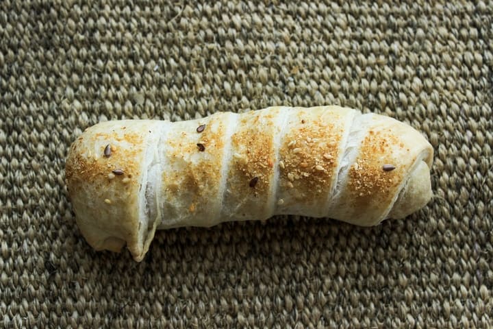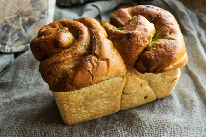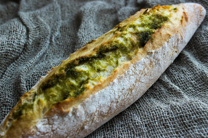 Пышный, ароматный мякиш с начинкой из масла и чеснока, хрустящая румяная корочка