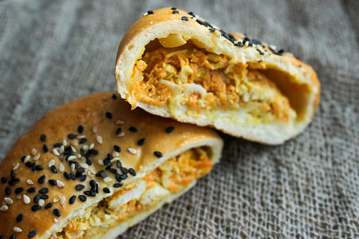 Воздушное тесто, сбалансированная начинка из риса, овощей и лосося