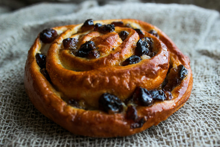 Ванильная, сочная булочка с изюмом замоченная в Роме