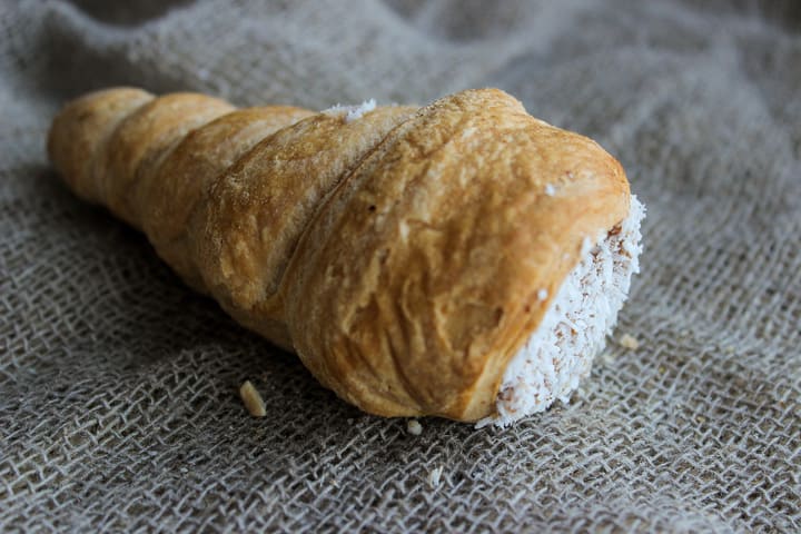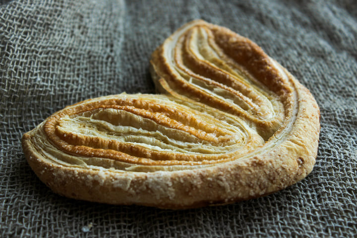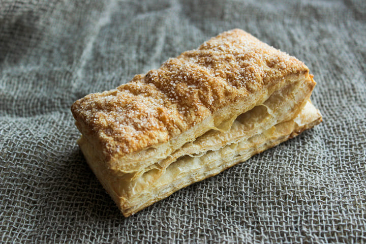 Слоеное тесто, начинка с ветчиной и твёрдым сыром
