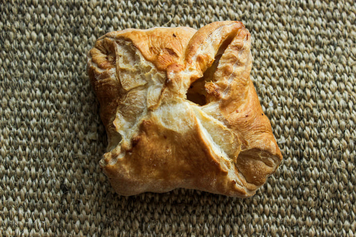 Слоеное тесто, начинка из запечённый курицы с добавлением овощей