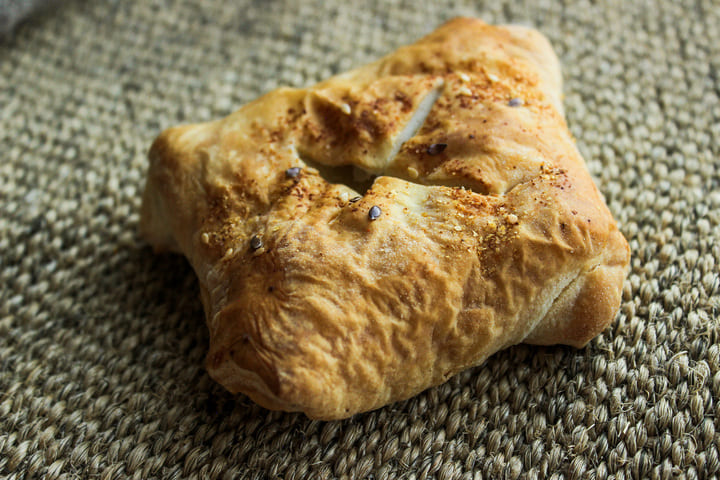 Слоеное тесто, начинка из пропущенного шпината с яйцом