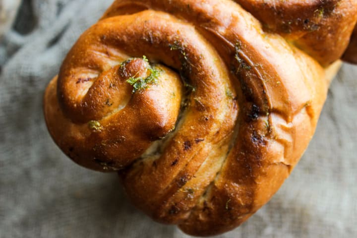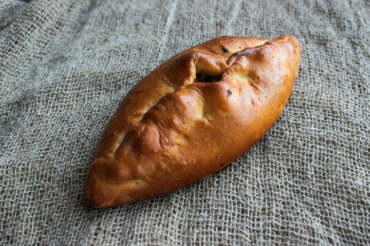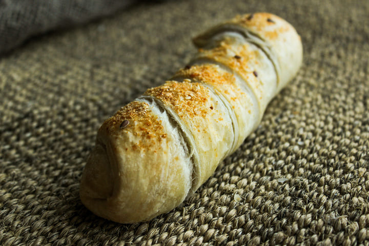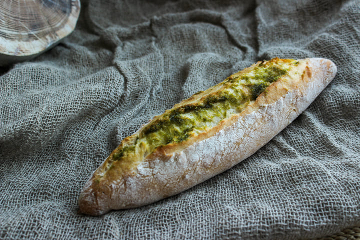 Пышный, ароматный мякиш с начинкой из масла и чеснока, хрустящая румяная корочка